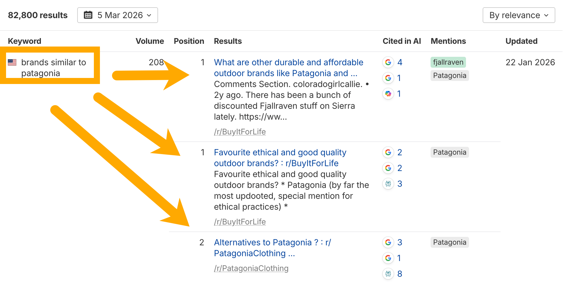 And see the specific Reddit threads where your brand (and your competitors) are mentioned: