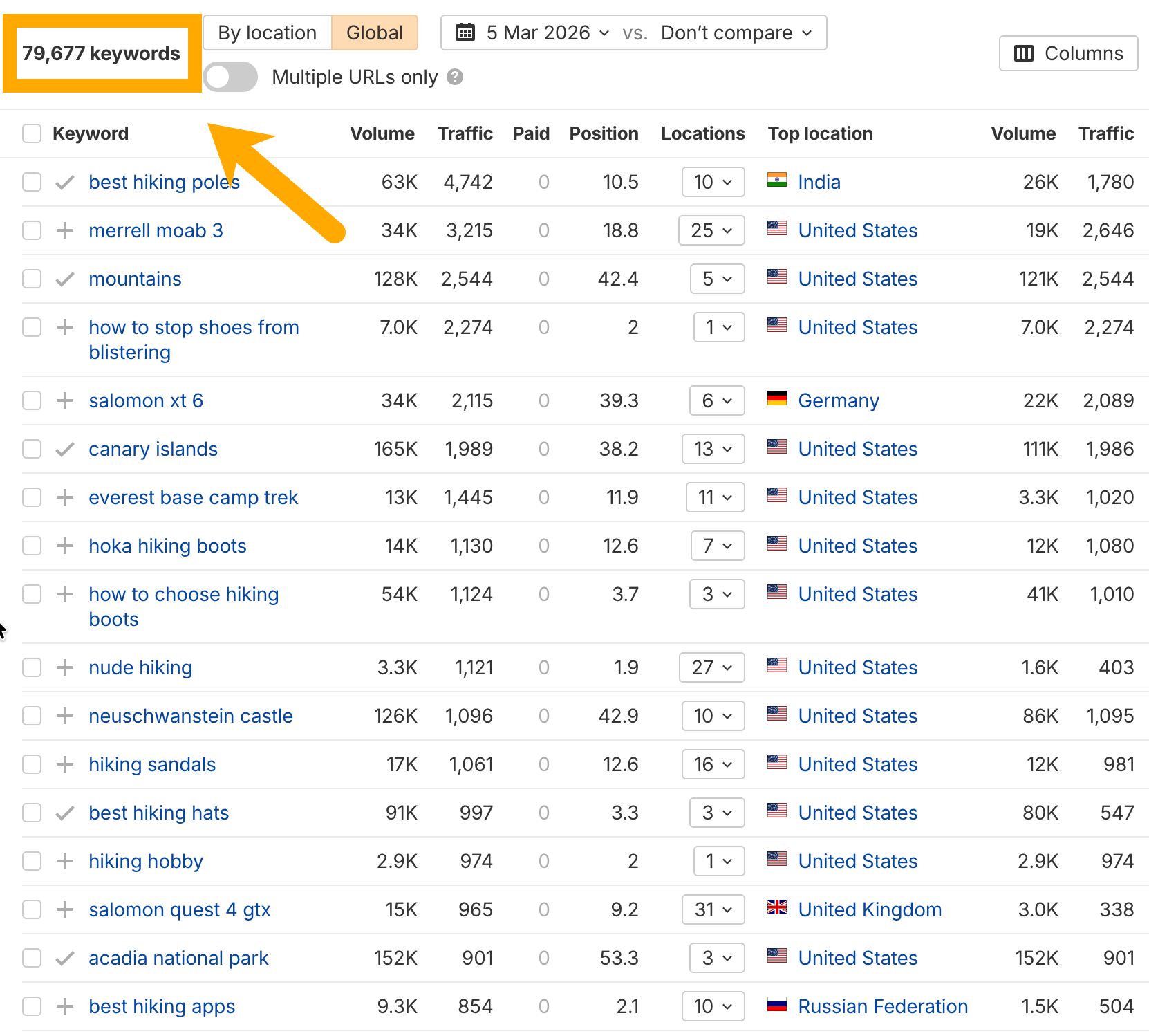 - Click into the Organic keywords report