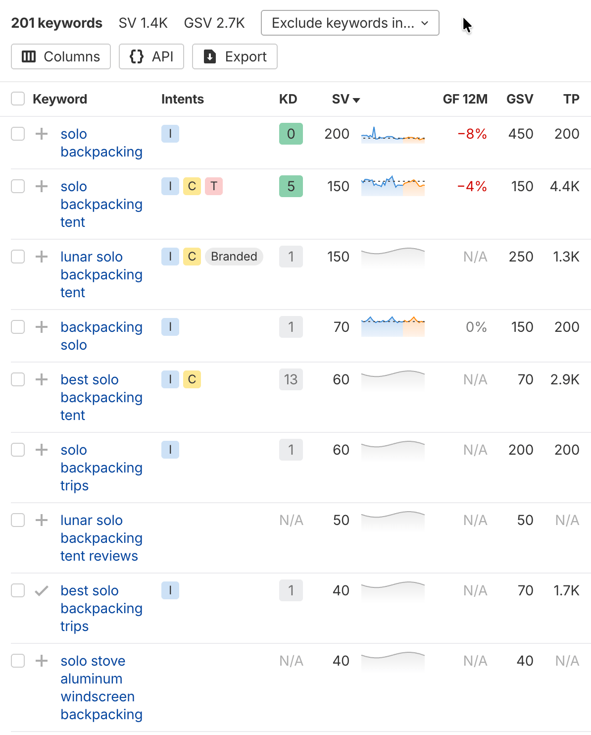 - Parent topic — This helps you identify clustering opportunities where one piece of content can target multiple keywords