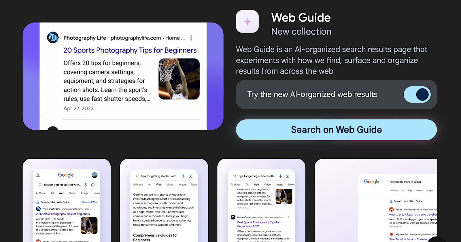 Google has launched Web Guide, an experimental feature in Search Labs that uses AI to reorganize search results pages.